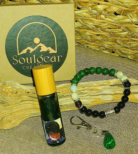 DOGS RULE! PET IMMUNITY Healing Gemstone set- Green Agate, Imperial Jasper, Obsidian with Malachite Pendant & Myrrh Oil for dog.