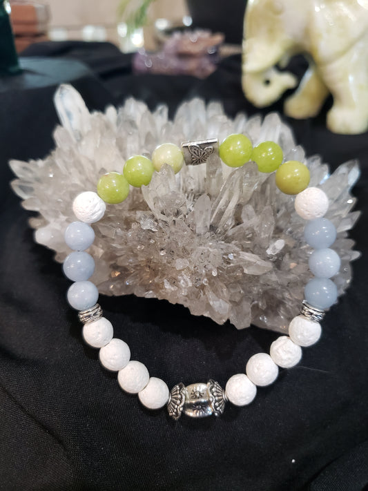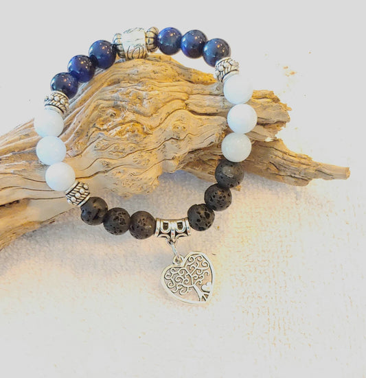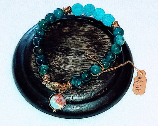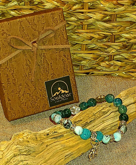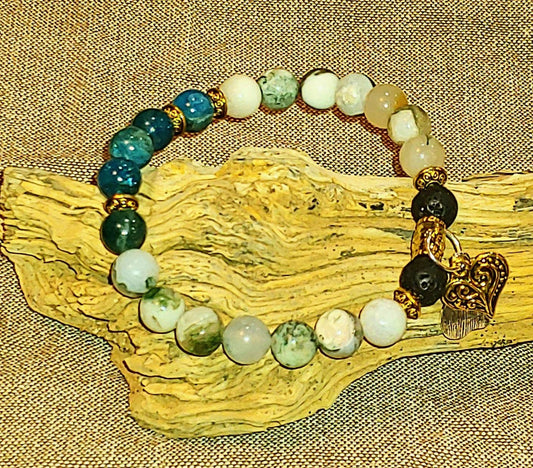 GEMSTONE CALMING 8mm bracelet,apatite ,tree agate,womans charm bracelet,