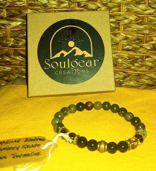 GEMSTONE BODY CLEANSING Unisex crystal bracelet of African Bloodstone, Tourmaline & Smokey Quartz-body cleansing/healing properties