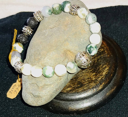 GEMSTONE INNER PEACE 8mm bracelet ,tree agate stones,anti anxiety,immunity boosting