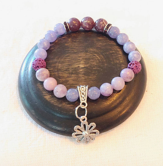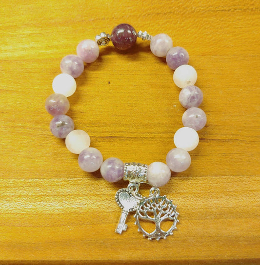 GEMSTONE DEPRESSION bracelet,heart stone rose quartz,mood balancing lepidolite,anti anxiety,aids with depression