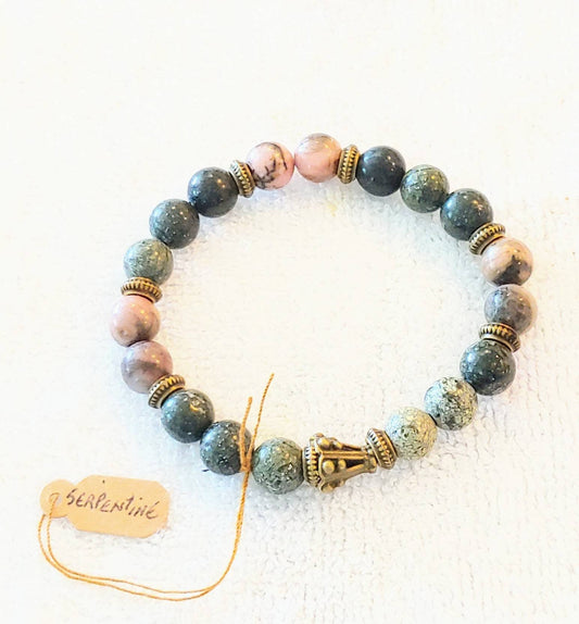 GEMSTONE HEALING Genuine gemstone bracelet,Rhodanite/serpentine love energy bracelet, 8mm pure gemstone beads,kundalini energy