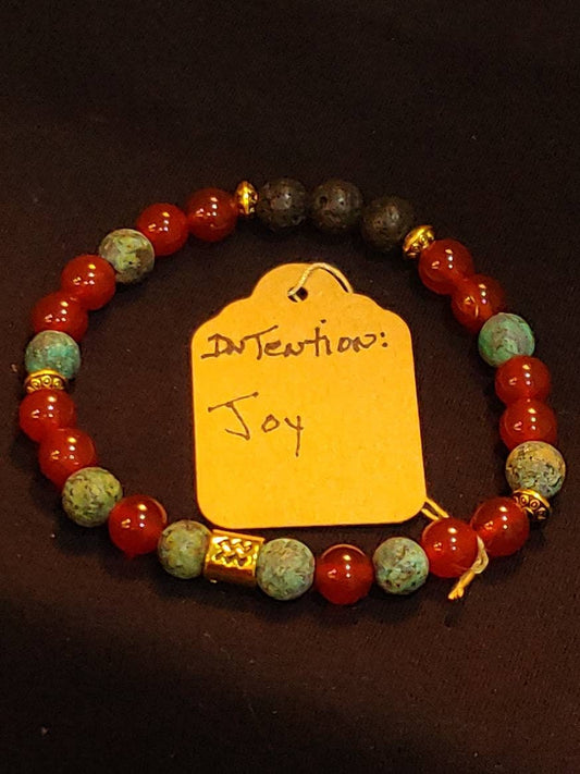 GEMSTONE JOY Intention genuine healing bracelet SET-African Turquoise & Orange Carnelian gold spacers, Lotus charm-8 mm bds, 20 dollars each