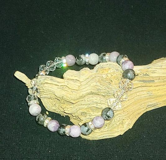 GEMSTONE PROTECTION Genuine crystal gemstone bracelet,healing crystal 8mm beads,anti anxiety and protection ,labradorite and lepidolite crystal beads