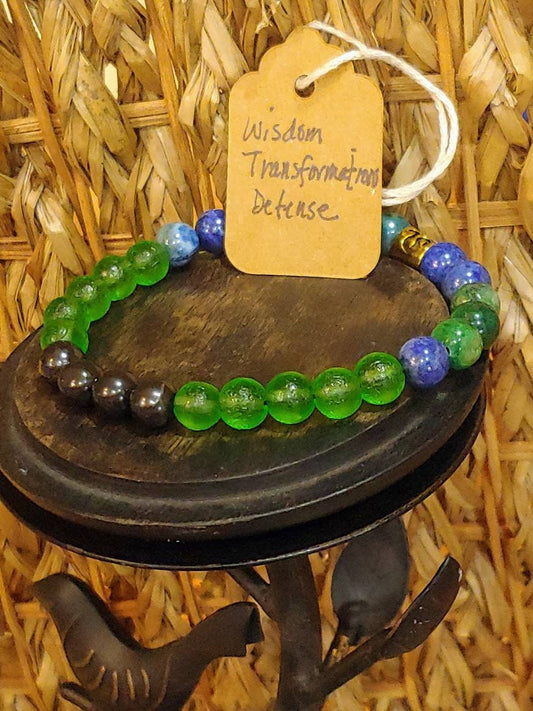 GEMSTONE THE HEALER genuine healing bracelet of Chrysocolla, Moldavite & Shungite, 8mm beads, very ancient stones!